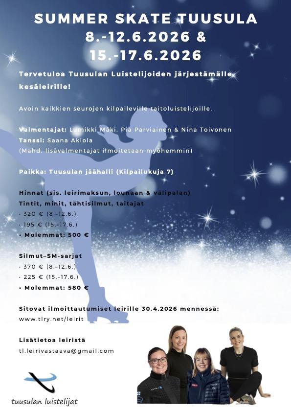 Kesällä 2026 Tuusulan Luistelijat järjestävät jo tutuksi tulleet kesäleirit: